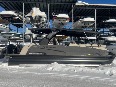 Ponton Princecraft Vogue 25 XT 2023 Gris sur Beige, Moteur Mercury 225Hp, Toit Campeur, Tour Wake, Système de Sons, Table, Simrad, Pole Ski &...