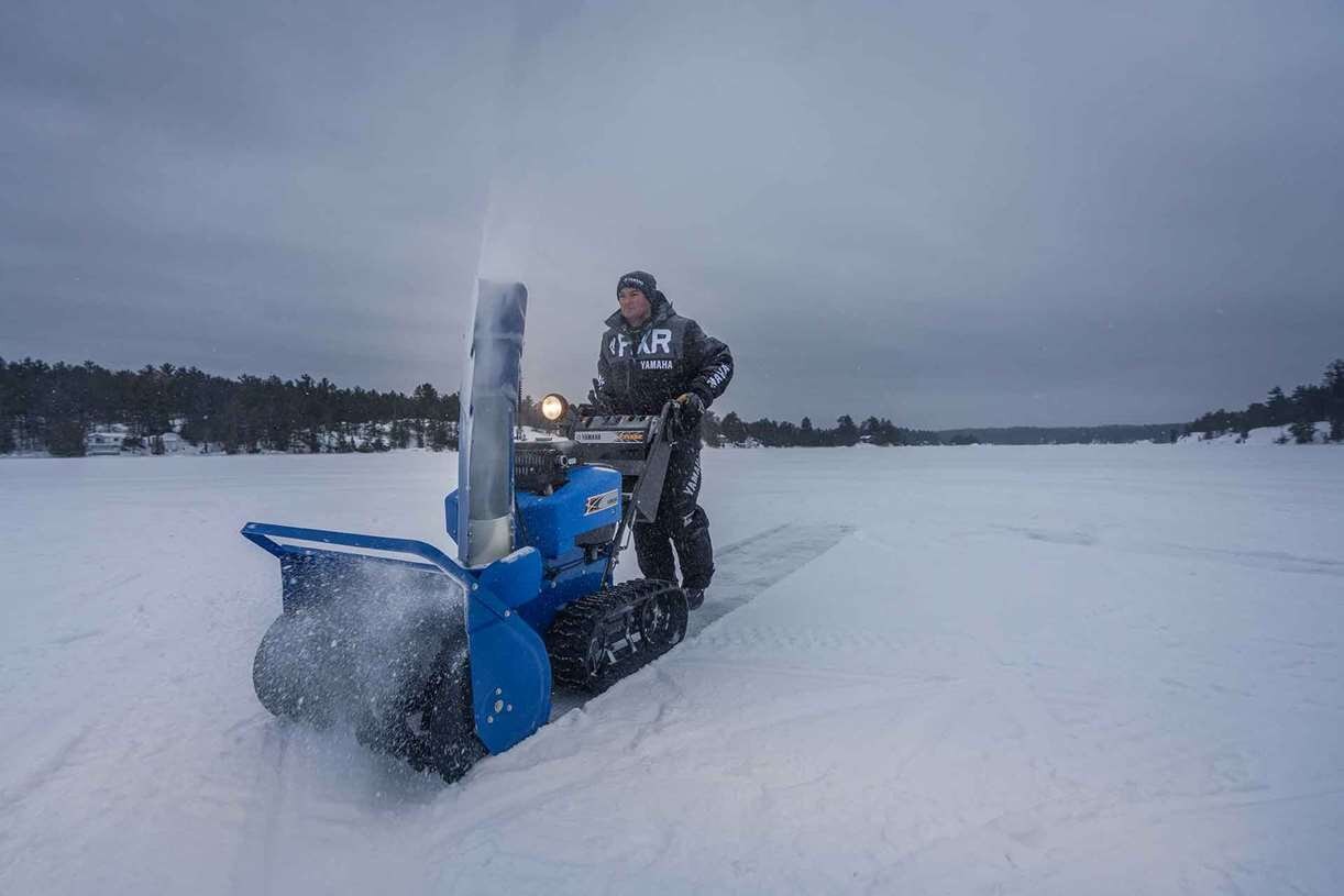 La tarière à deux phases de 815 mm fait appel à une lame robuste en acier dentelé qui ne fait qu'une bouchée de la neige damée et de la glace. La hauteur de dégagement est de 570 mm. Une turbine à haute vitesse crache la neige sur une distance allant jusqu'à 19 mètres par la cheminée d'éjection à revêtement en résine. La YT1332ED avale jusqu'à 76 tonnes de neige à l'heure.