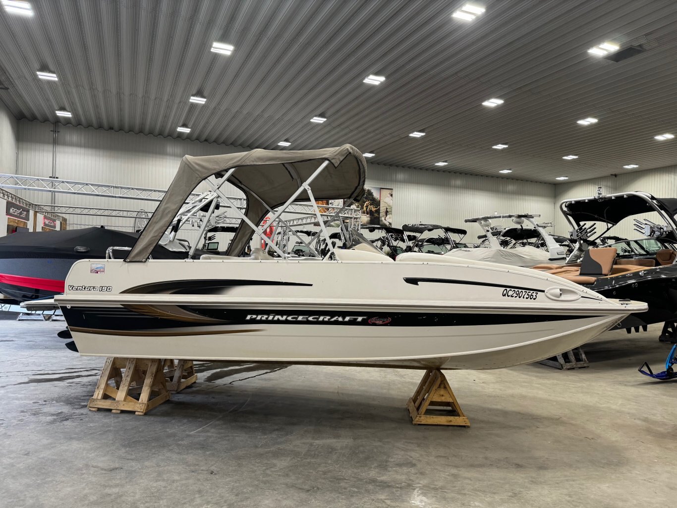 Bateau Ponté Princecraft Ventura 190 2010 Beige & Vert Moteur Mercruiser 4.3l avec Toit Campeur Neuf!