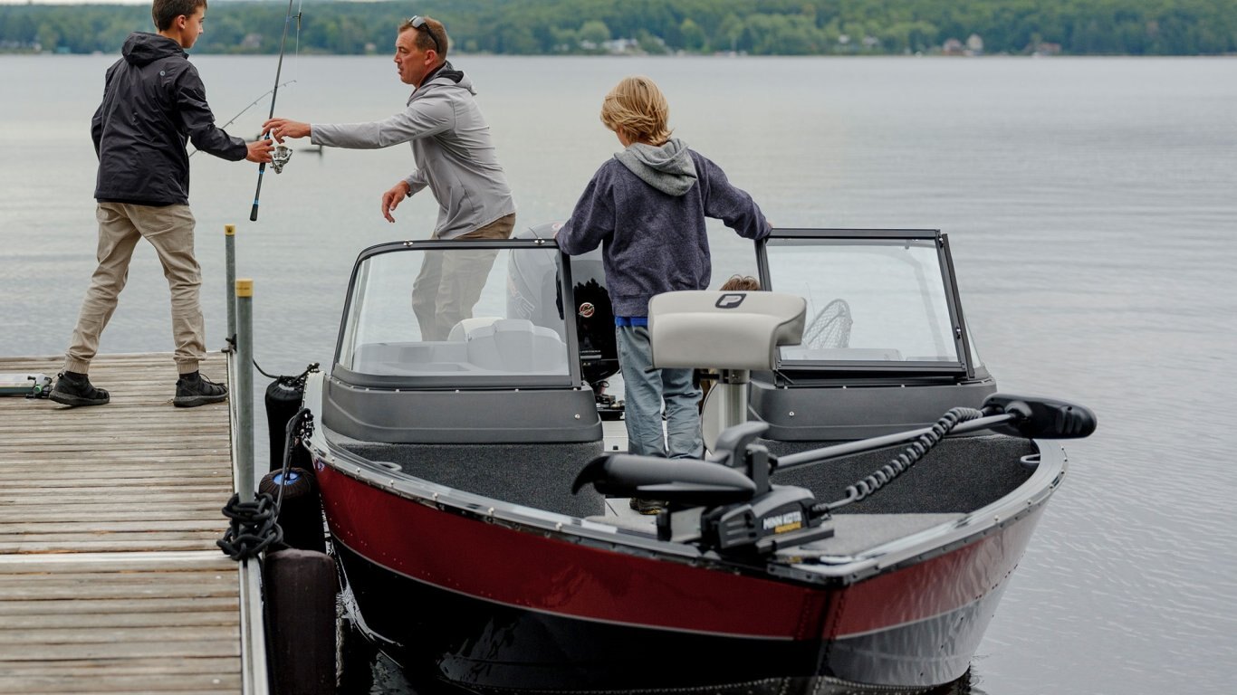 Groupe d'options- Forfait Pêche: Graphiques de l'équipe de pêche du tournoi, règle de pêche, échange de siège de luxe, base de siège plate(s) sur plateforme de pêche(s), rangement rapide des cannes, ajout de filets sous la console(s) et sur la plate-forme avant