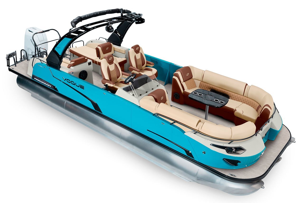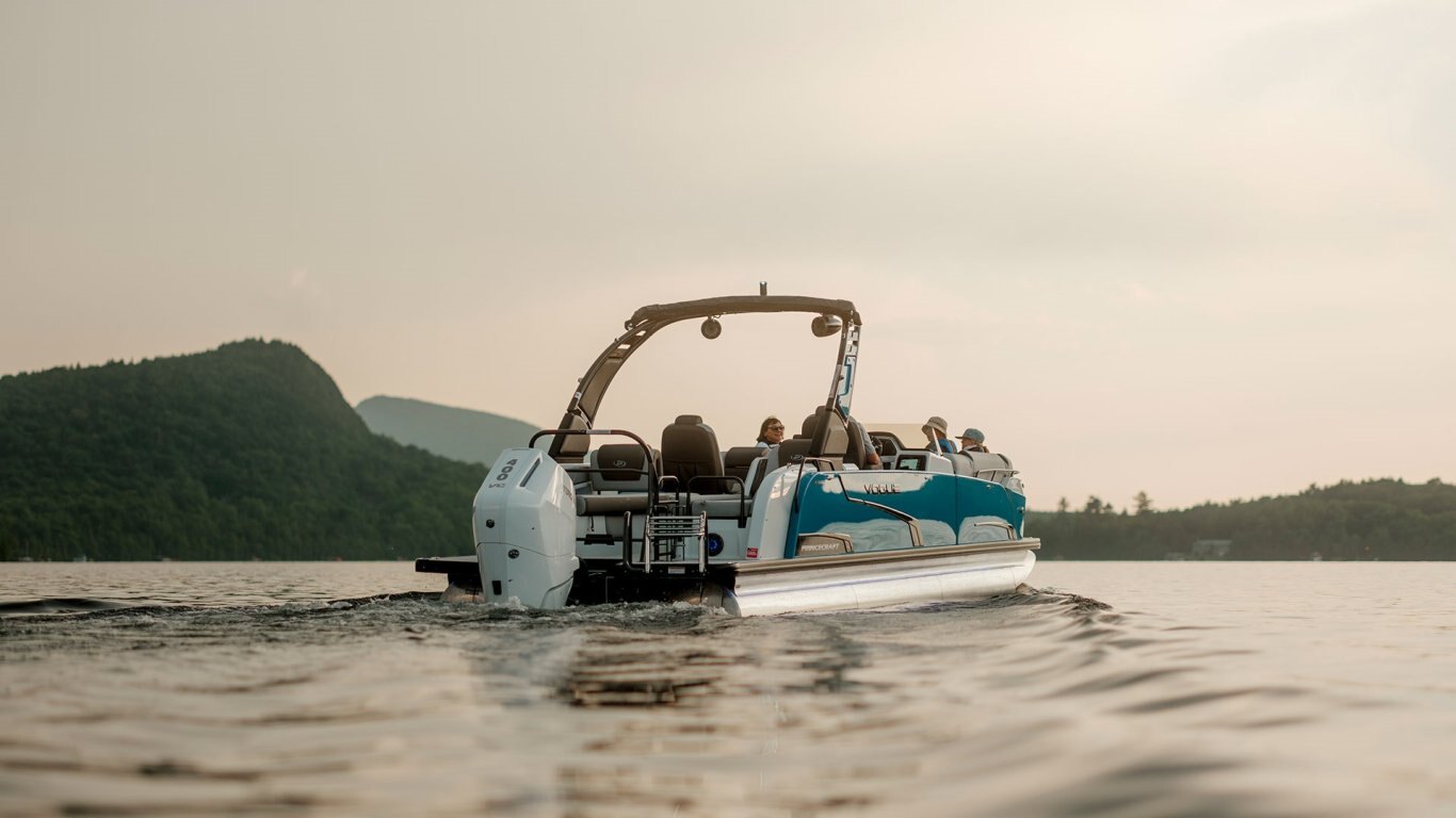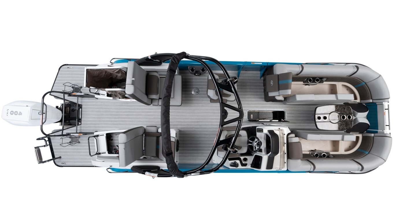 - Édition sportive (accent de correspondance des couleurs) y compris un revêtement en vinyle texturé de qualité supérieure, un éclairage LED au sol, un toit bimini, des rondins de ponton, des haut-parleurs et des porte-gobelets fixes