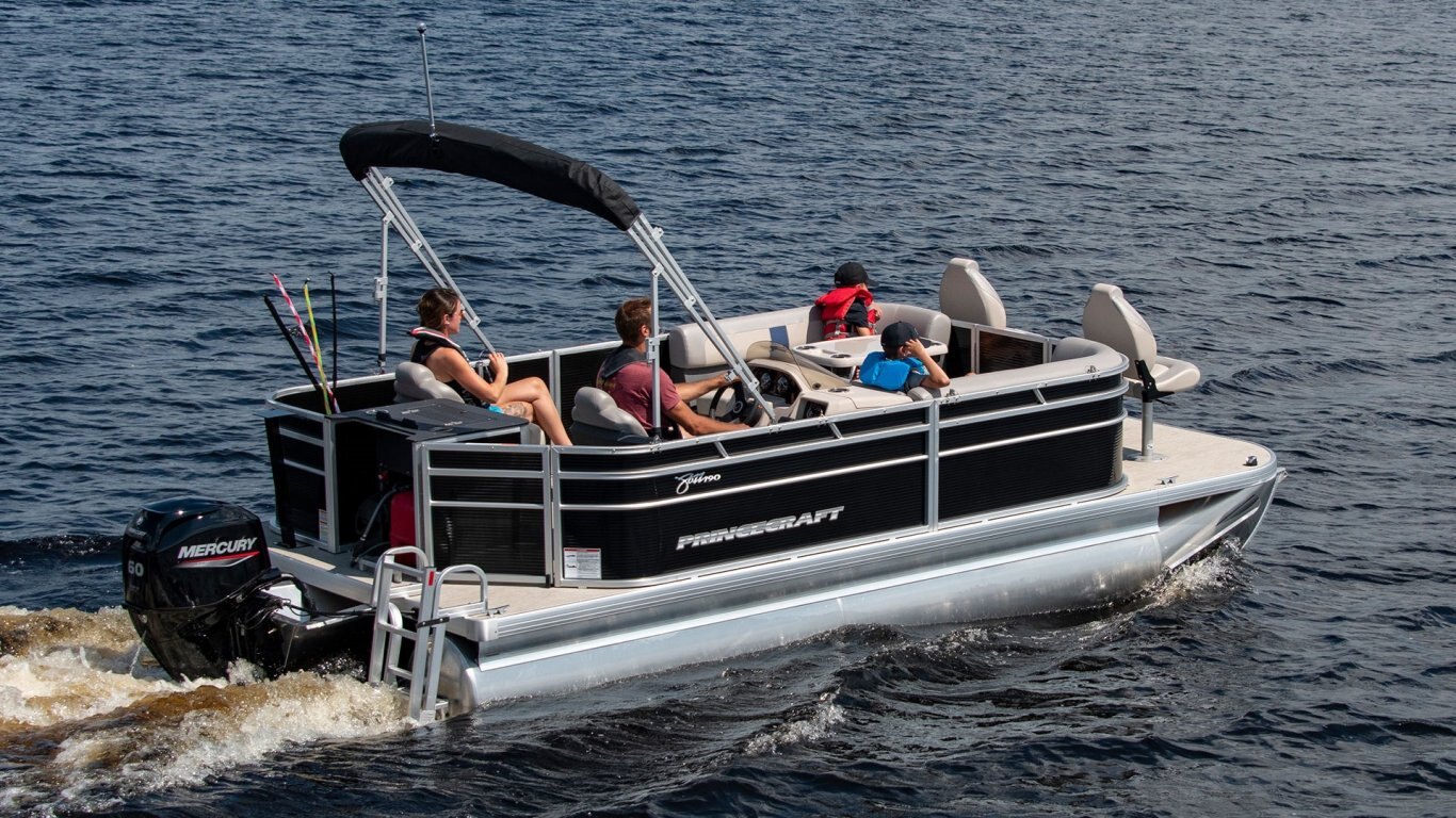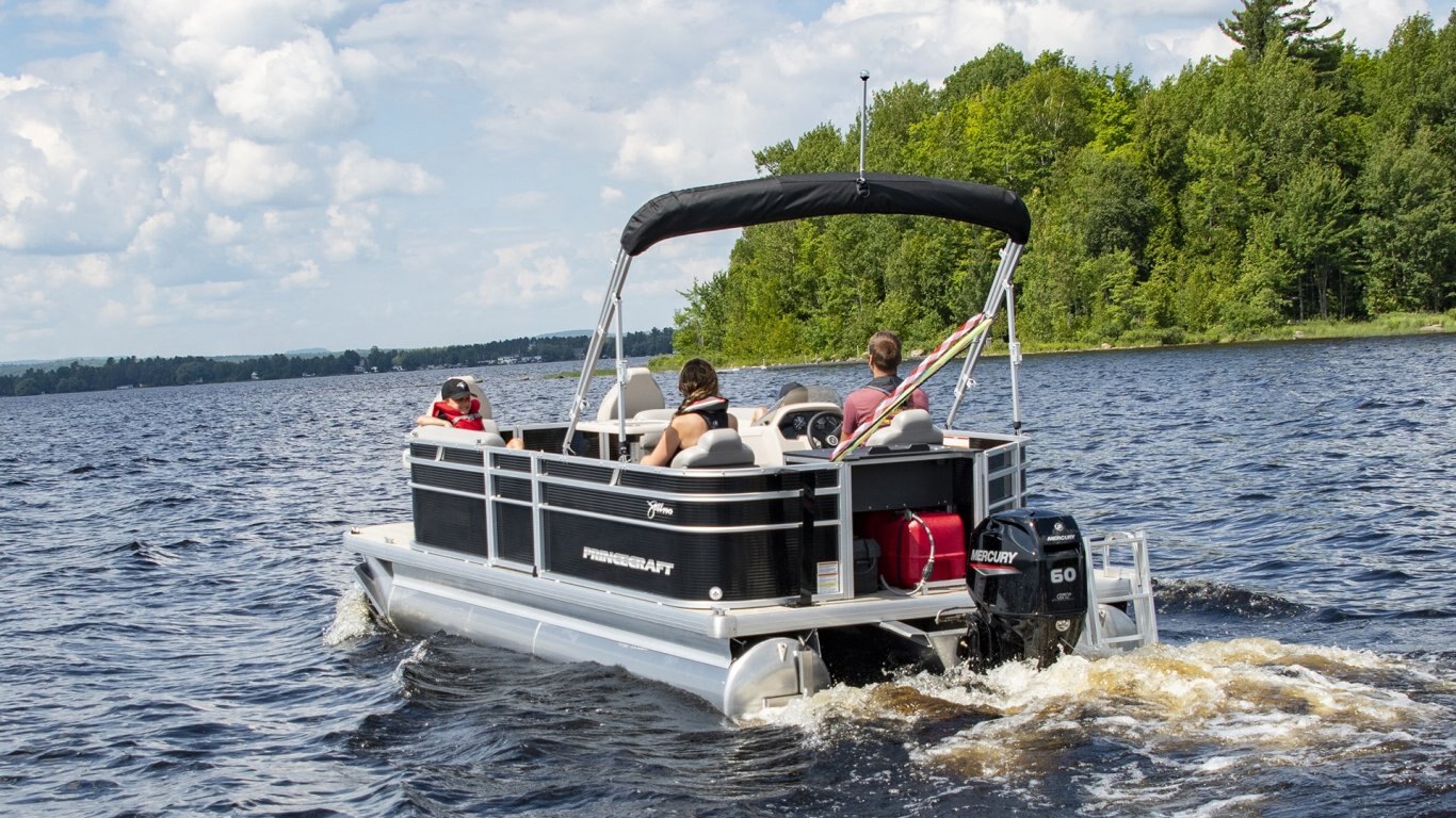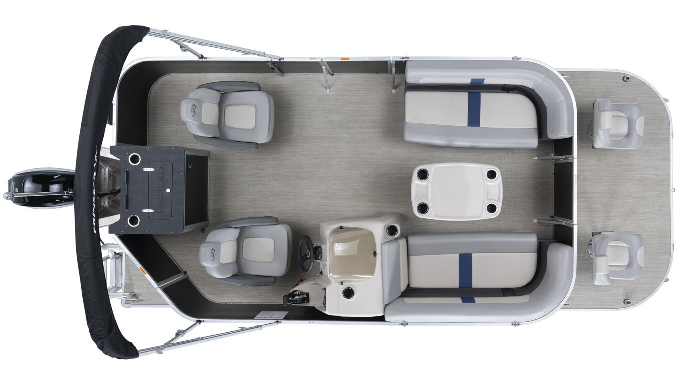 • Ensemble de concerts comprenant un système AM de 160 watts/FM/Bluetooth Jensen®radio avec 2 haut-parleurs, indicateur de vitesse, tachymètre, klaxon, lumières d'accueil LED, prise USB dans le tableau de bord et pare-brise fumé (pour les moteurs de 9.9 à 25 HP)