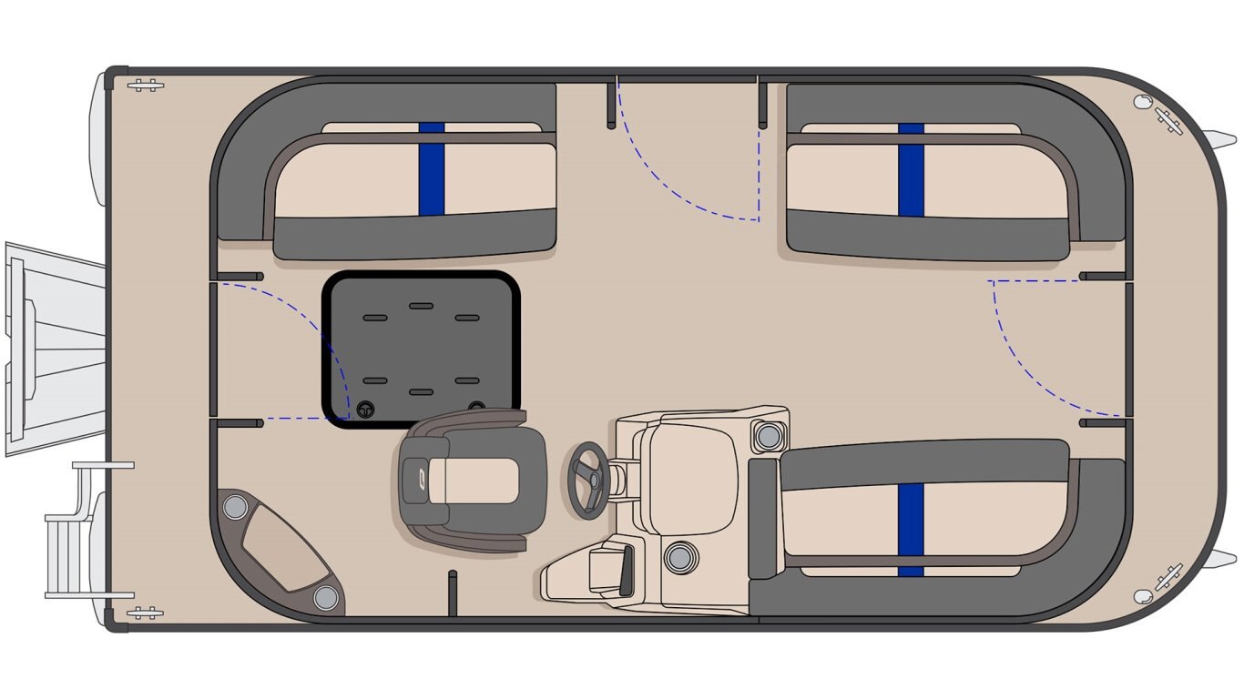 - L'édition noire comprend des garde-corps peints en noir, une sellerie foncée, un graphisme bleu électrique, un siège capitaine de luxe, un Princecraft 3D®black chrome logo on both sides and front door
