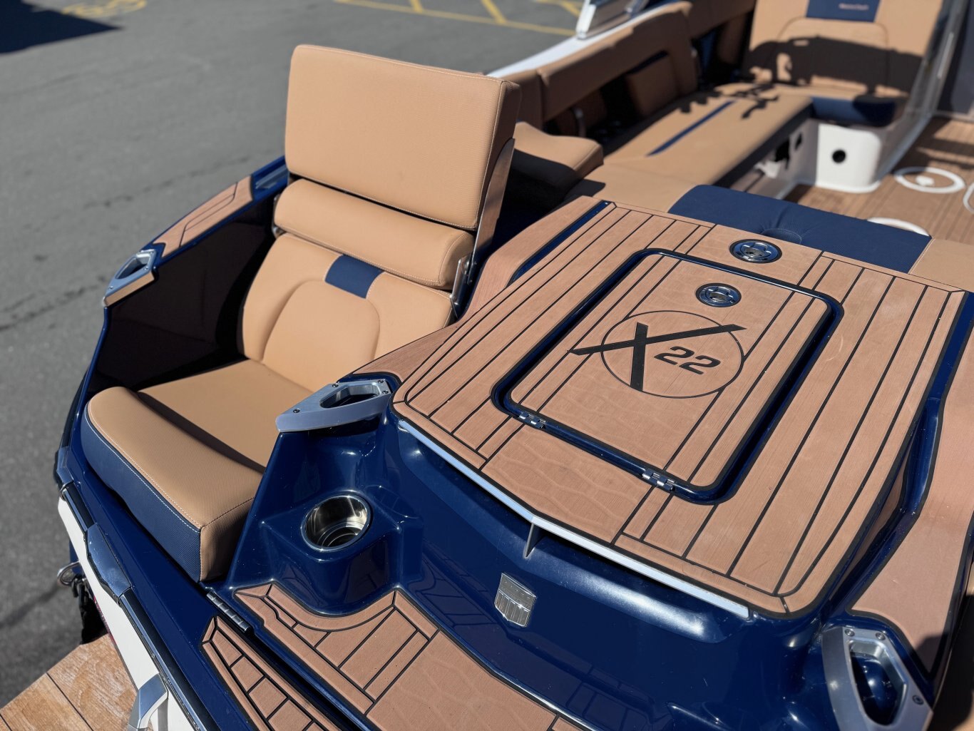Bateau Mastercraft X22 2021 Bleu sur Tan, Moteur Ilmor 6.2l 430hp avec 744h, Complètement Équipé pour le Wakesurf!
