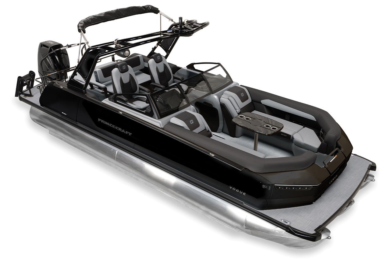 2026 Princecraft VOGUE® 25 WRL Sans édition Noir métalliqueSystème audio haute puissance Premium comprend un écran tactile Simrad® de 15", un centre multimédia Hertz Capri H100, six haut-parleurs haute performance, un caisson de basses de 10" et plus