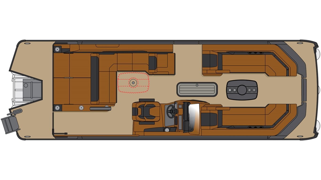 • Édition Sport comprenant une sellerie haut de gamme en vinyle texturé et un éclairage LED sur le plancher, le toit bimini, les billes de ponton, les haut-parleurs et les porte-gobelets fixes