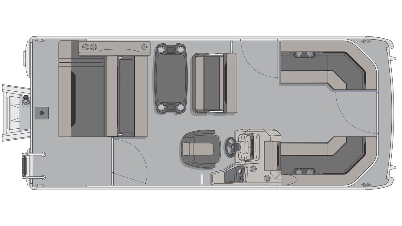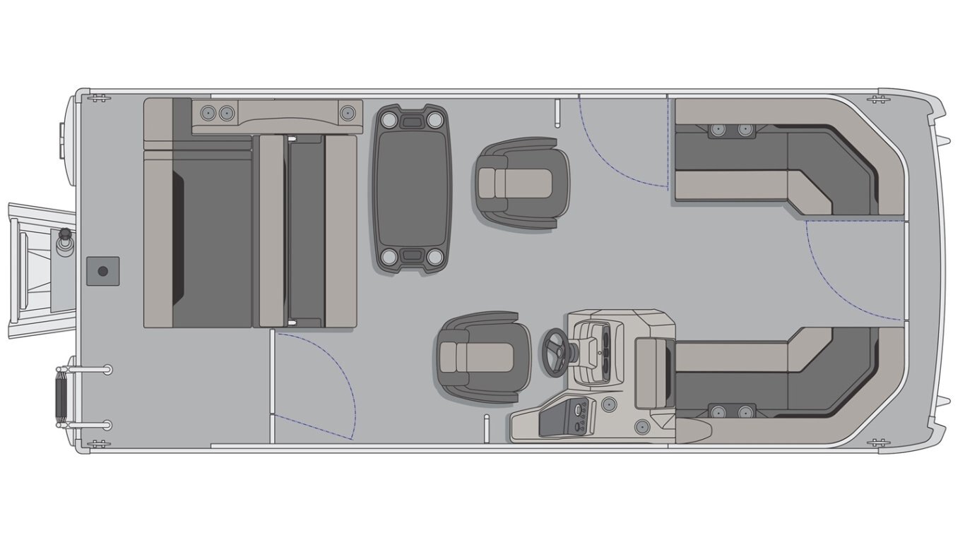 • Conception RL comprenant un siège capitaine pour le passager, un bain de soleil avec dossier réglable à deux positions, une grande table pour les collations et des rangements sous tous les sièges