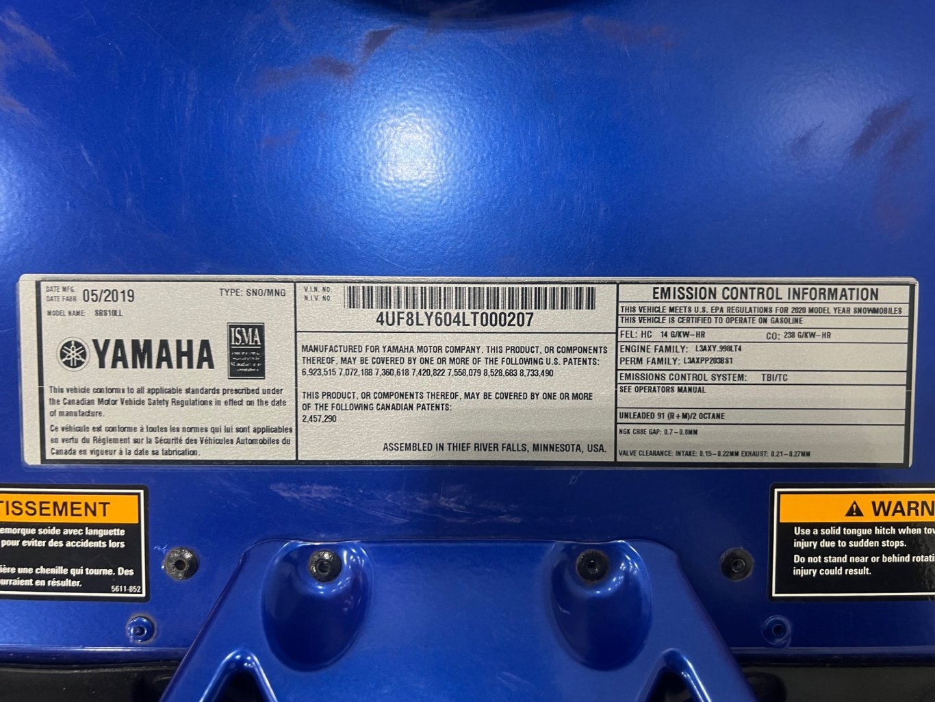 Motoneige Yamaha Sidewinder L-TX SE 2020 Bleu, Seulement 830km, suspension électrique, siège chauffant!!